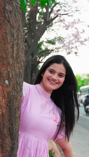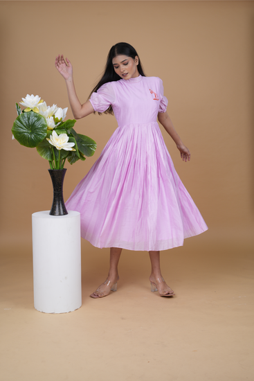 Cords Theory unveils its musical collection: a long lavender gown that whispers of elegance and artistic expression. Crafted from sumptuous chandheri fabric and adorned with a captivating Veena logo embroidery, this gown is a unique and unforgettable piece. Deeply rooted in Indian ethos and imbued with rich cultural connotations, it celebrates the timeless beauty of our heritage.