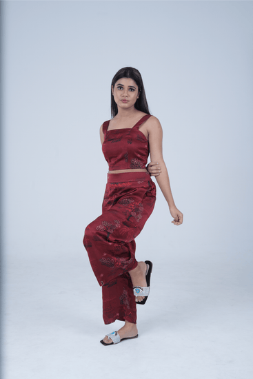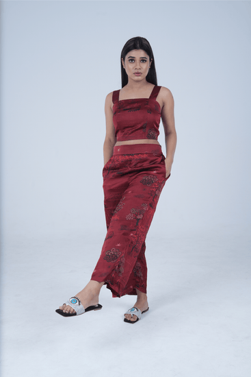 Make a statement in this striking red crop top and cord set made from GOTS certified organic fabric. The modern cut and vibrant color are perfect for those who love to push the boundaries of fashion. Ideal for an evening date or a stylish day look, this set is sure to turn heads. Crafted with love for you and our Planet.